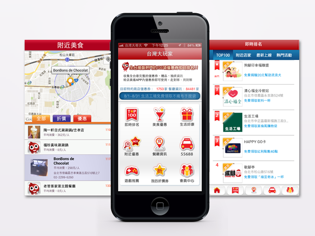《台灣大玩家》APP結合食衣住行育樂等數萬店家優惠,打造全新娛樂平台,提供最即時、最快速、最熱門生活資訊。功能涵蓋:實體通路折扣優惠、熱門手機遊戲、地圖美食搜尋、網路叫車等功能。