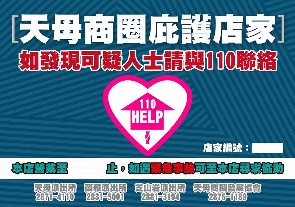 如果有其他店家願意加入,煩請留個資料,只要提供 #店名、#地址、#營業時間 三個資料,將會整理成一份清單,後續會與天母地區派出所同步更新,感謝各位功德無量。