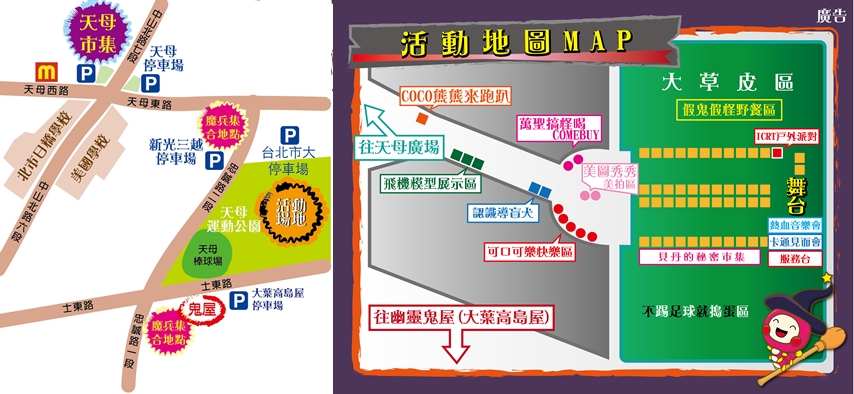 4.要糖後可前往天母運動公園參加主場地活動,或至魔怪商舖特約店家要糖搗蛋。
