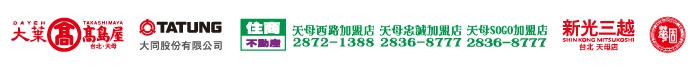 大葉高島屋、大同股份有限公司、住商不動產天母西路/天母忠誠加盟店/天母SOGO加盟店、新光三越臺北天母店、華固建設股份有限公司