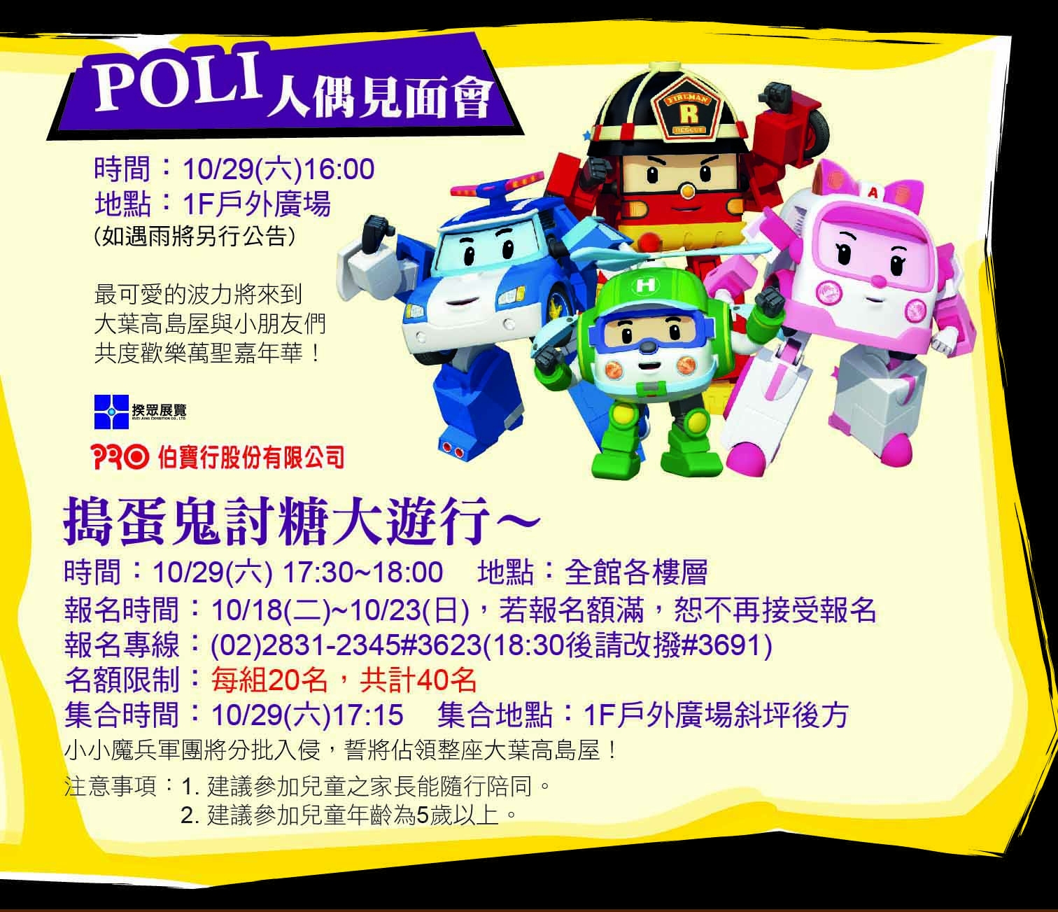 最可愛的小小兵與波力將接力來到大葉高島屋與小朋友們共度歡樂萬聖嘉年華!!