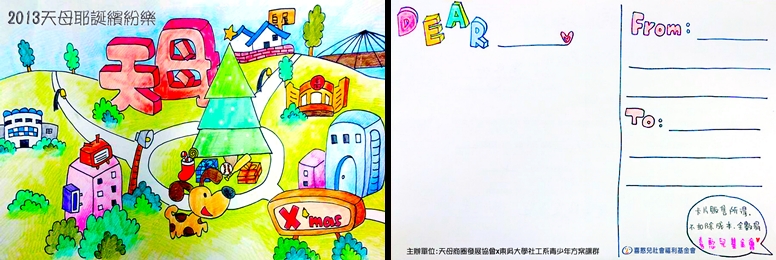 你有多久沒親筆寫張卡片送給你的朋友呢? 充滿歡樂氣氛與祝福的聖誕夜,總是讓人特別幸福。在台灣卻有一群人無法開心的度過如此快樂的聖誕節,因此讓我們一同將這一份快樂與祝福分送到社區的小角落吧!