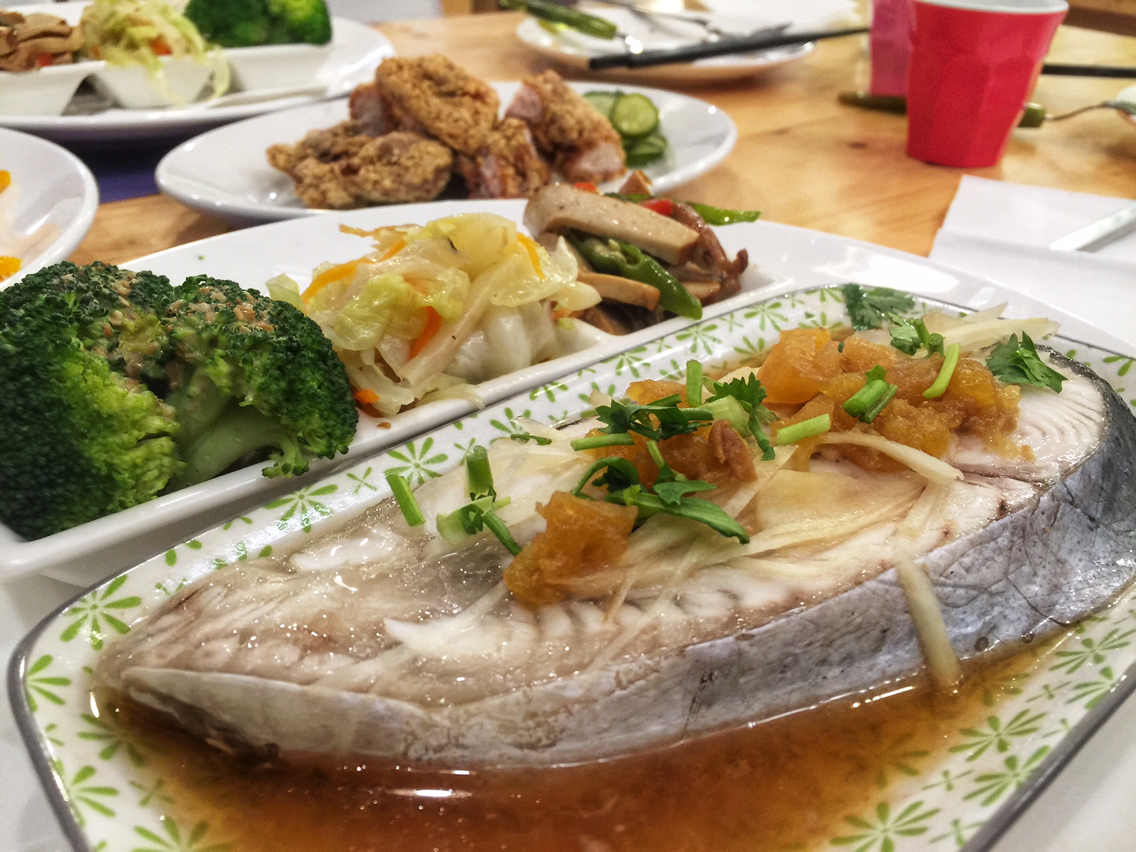這裡主打鮮魚料裡,當晚點了烤鱈魚、清蒸紅甘魚,再單點酥炸雞排、墨西哥脆片,烤鱈魚旁邊黑黑的是魚皮不是烤焦,上頭抹上味增下去烤帶來更深的層次,現撈的紅甘清蒸後帶點甜味,搭著三樣家常配菜,真的有媽媽的味道,再次分享給大家囉。
