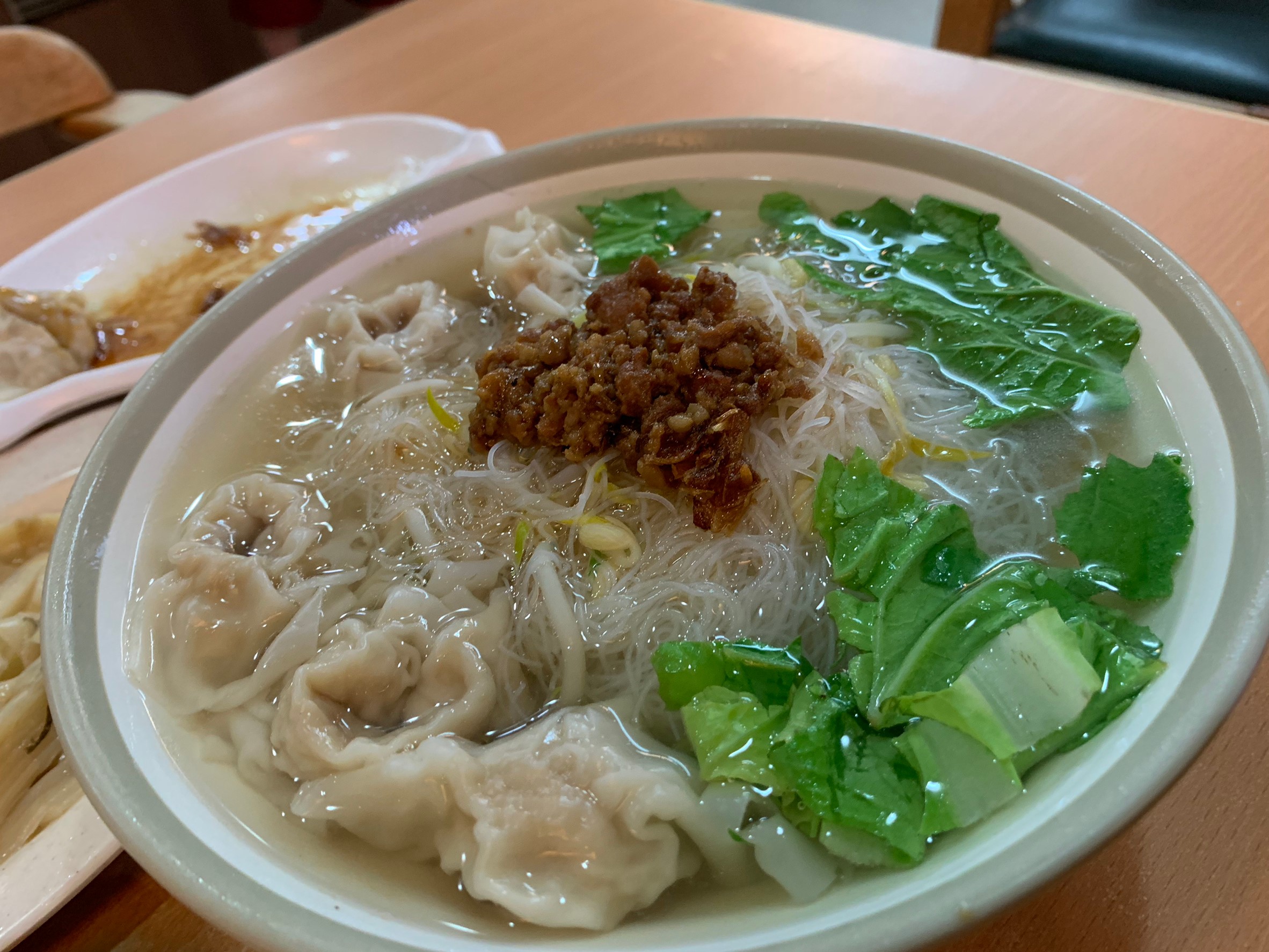 扁食米粉湯端上真的有嚇到,超級無敵大碗,還特別跟店家確認有沒有做錯,店家說他們的米粉湯就是這麼大,各式涼拌菜通通30元,還有16顆生扁食只要60元,平均一顆不到5塊錢,重點用料還不馬虎,買一盒回家當消夜煮都划算呢~~