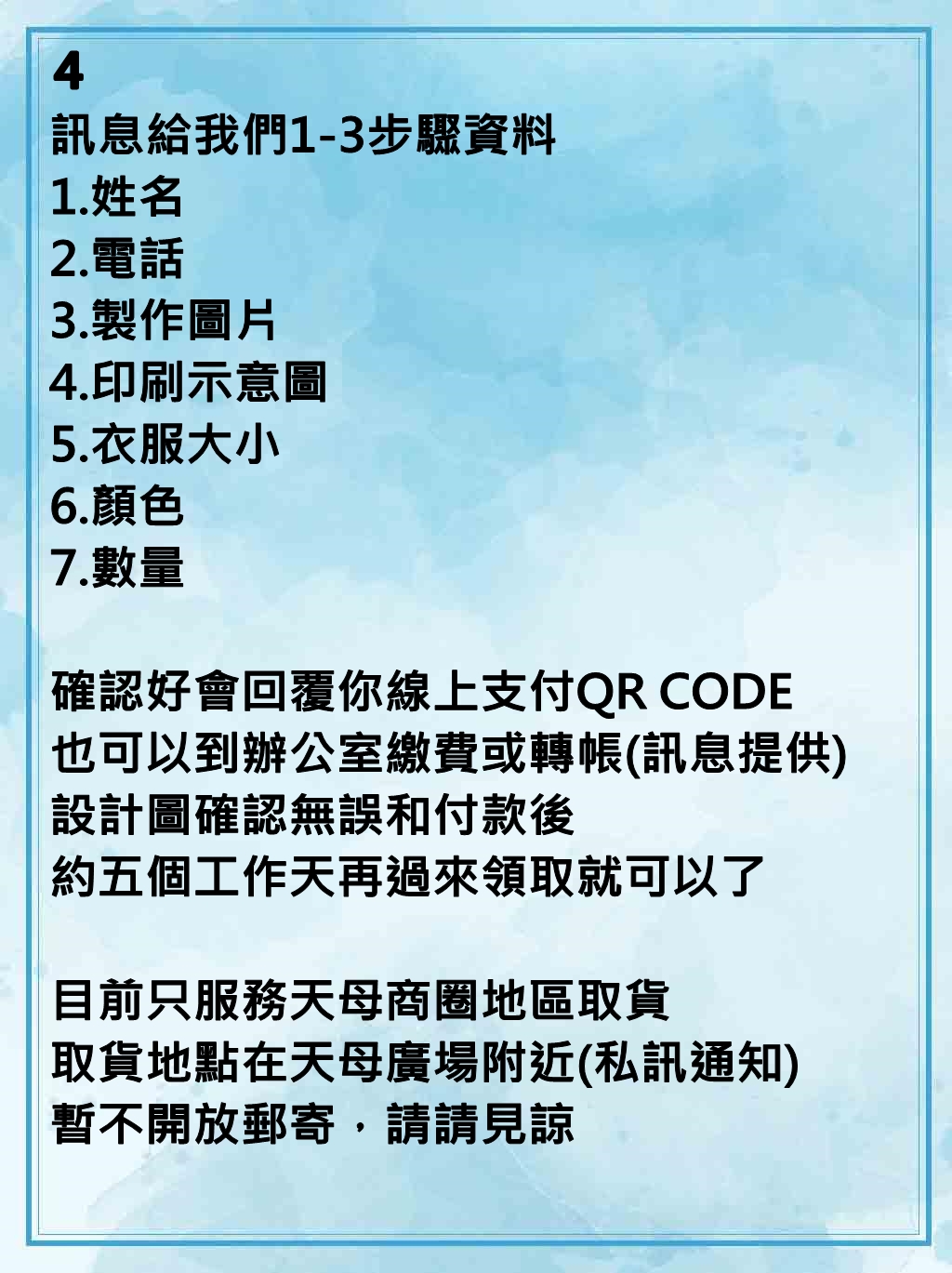 目前只服務天母商圈地區取貨,暫不開放郵寄,請請見諒。