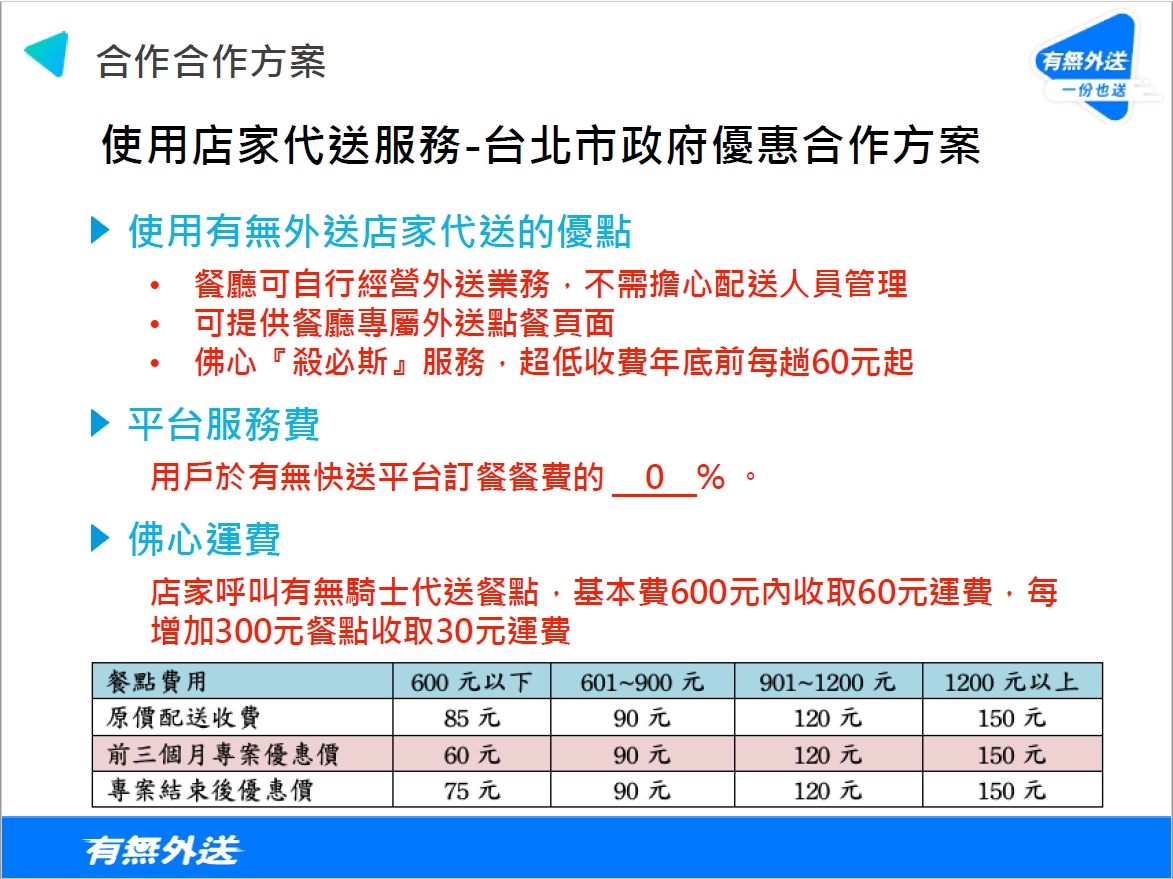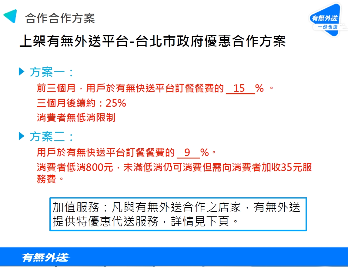 5、有無外送提供兩種方案,其一是單純外送人員提供