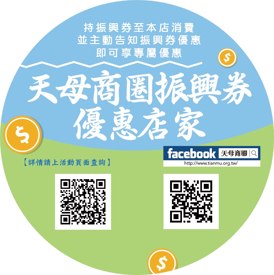 憑面額1000振興券元可換面額1300天母券,三倍振興券可換四倍天母券(約75折優惠)。