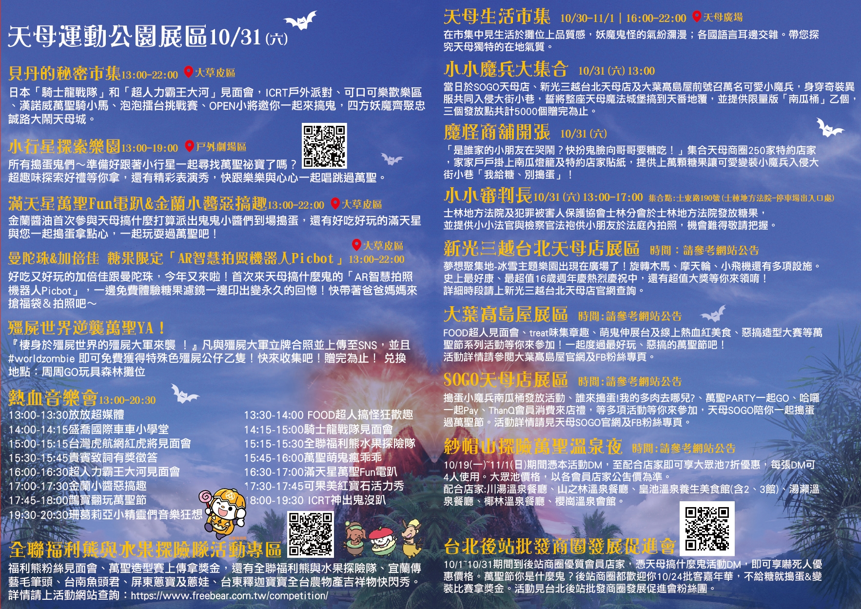 時間:10/31(六) 14:00-21:00 地點:天母運動公園水景廣場右側