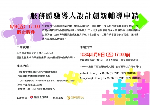 商圈新聞 : 中小企業處「服務體驗導入設計創新輔導」申請5/9(五)截止
