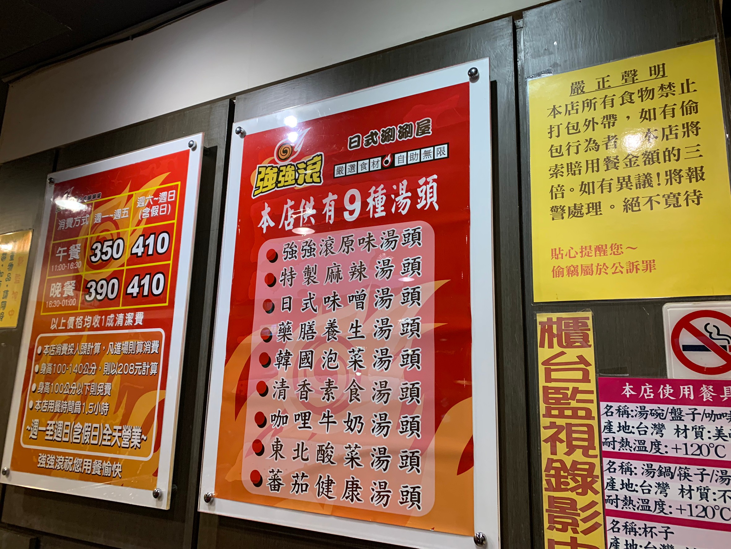 沒錯~就是芝山捷運站對面的強強滾,含服務費最低385元就可以吃到飽,晚上十點後折扣後一個人只要351元還含服務費,當然肉品選擇上只有基本款,但海鮮、火鍋料、青菜、熟食等就多了。