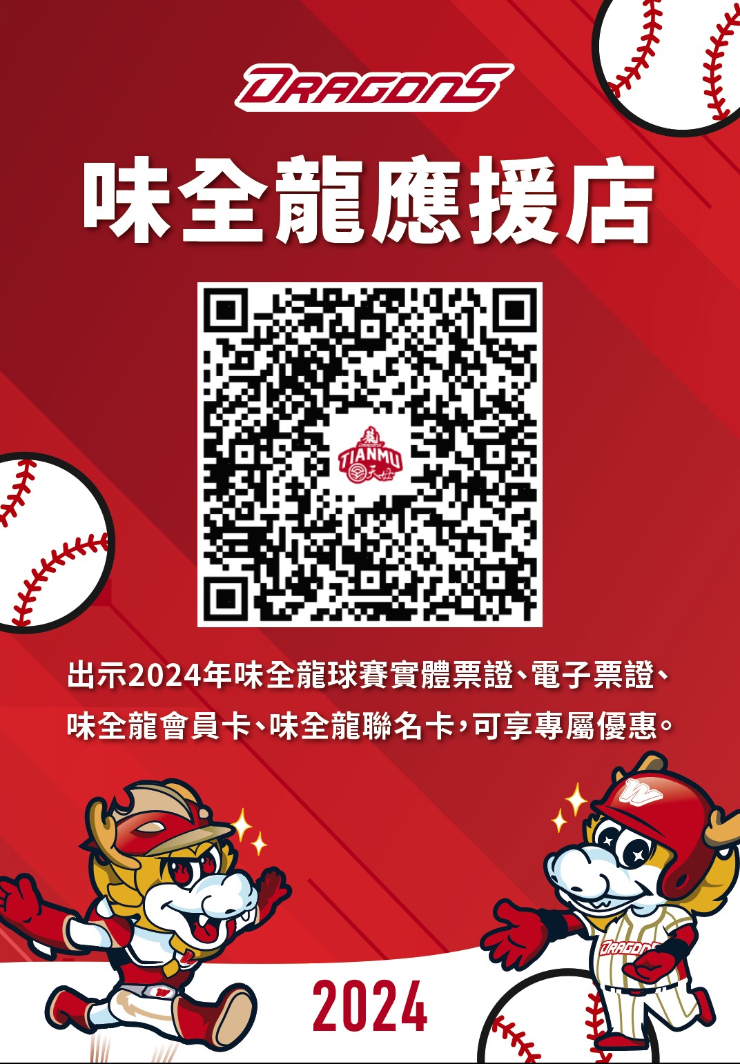 使用方式:至味全龍應援店出示於天母棒球場舉辦之味全龍LINE官方會員即可享下列優惠。
