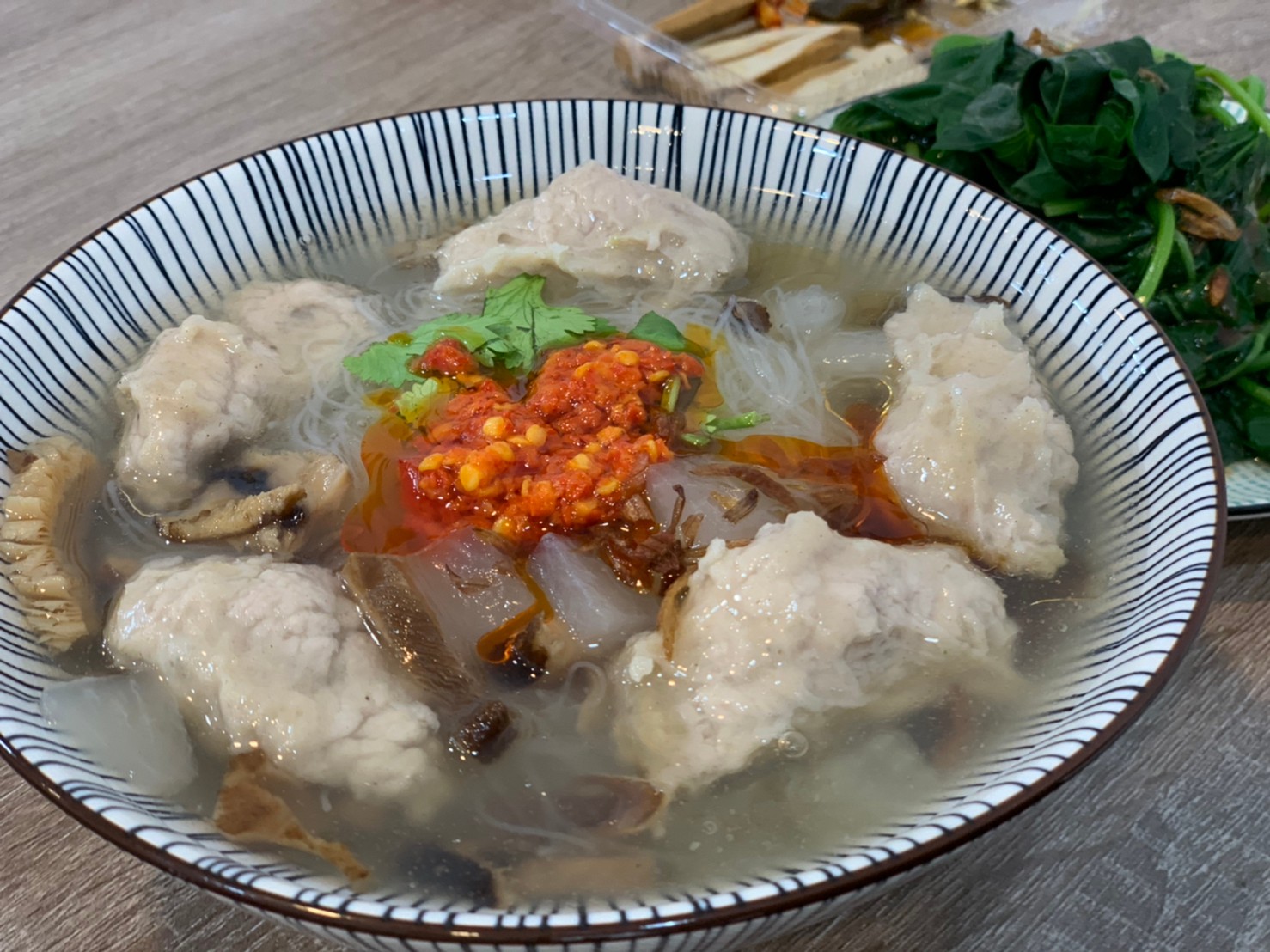 老闆娘愛吃辣,店內的辣椒也是店家自己炒,裡面有朝天椒、鬼椒、還有另一種辣椒(不小心忘了),愛吃辣的朋友一定要加兩匙試看看唷。