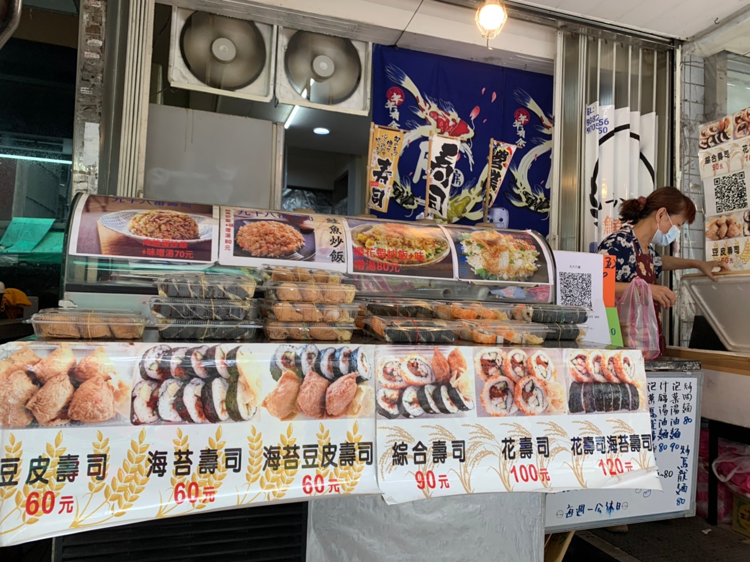 九十八番壽司提供平價壽司,60元就可以吃到一整條的海苔壽司,花壽司也只需要100元就可以買到,當日新鮮現做。
