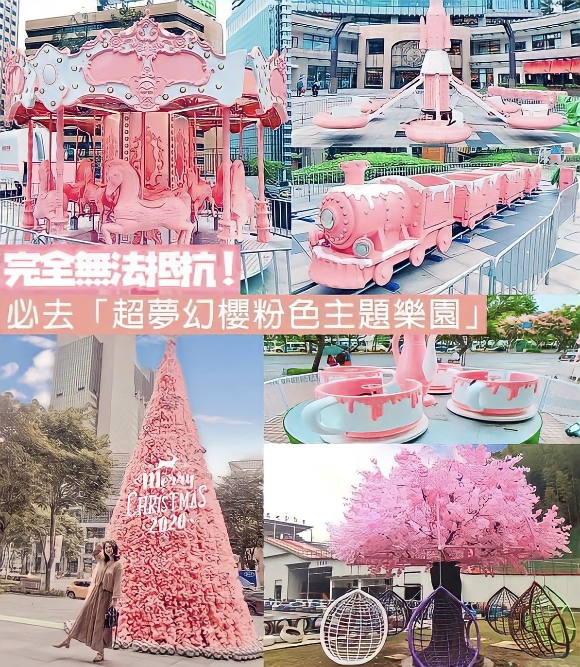 天母地區最美樂園旋風登場!大人小孩都愛,現場漂亮的旋轉木馬、可愛的小火車都等你來玩,快點來新光三越台北天母店進入粉紅的世界!