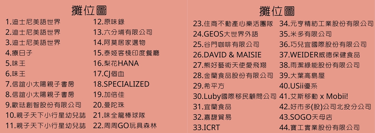 (主辦單位有權調整位置,最終將以活動當天位置為準)