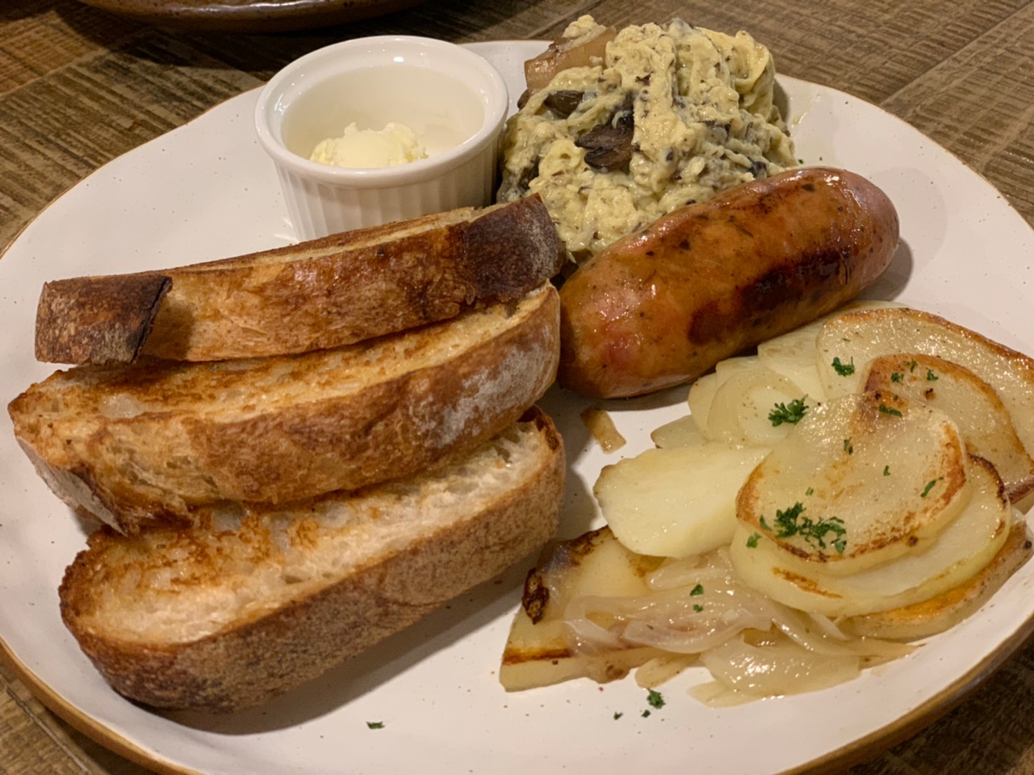 當天太太點了炒蛋早餐,濃濃的松露味超香,自製的煙燻蘋果香腸吃起來超juicy,而編仔點的是墨西哥雞肉酪梨三明治,主要是酪梨有一種奶香味,喜歡的人一定要來一份試看看,在此分享給大家唷。