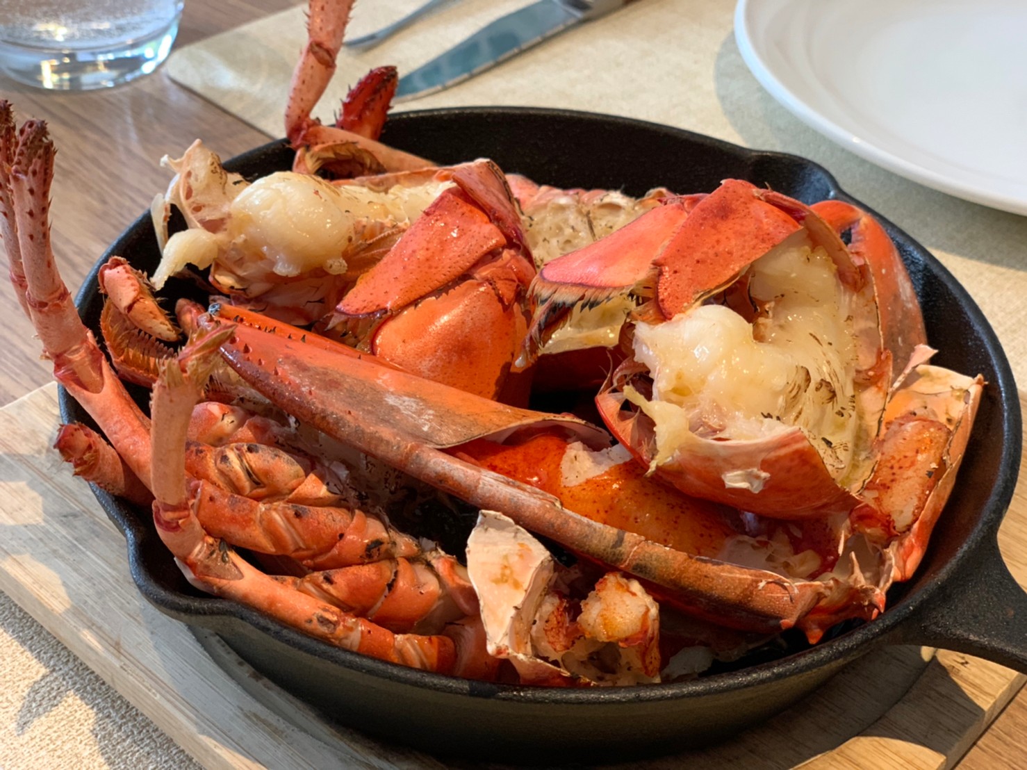 進入主菜的龍蝦,不得不說一分錢一分貨,活龍蝦真的就是鮮甜又Q彈,感覺是烤過再淋上熱黃油,就是這樣簡單的料理方式,才可以吃出最新鮮食材的甜美。