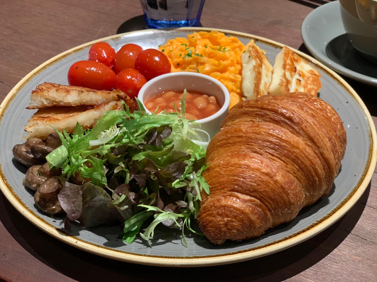 餐點約250-350左右就可以吃到澳式早午餐,不得不說這胖胖的可頌真的是烤的恰恰好,一口咬下去酥酥脆脆,奶油香瞬間湧入口中,再看老闆在旁賣力的桿麵糰對你微微笑,吃進的是老闆滿滿的用心,我想這就是幸福的滋味吧。