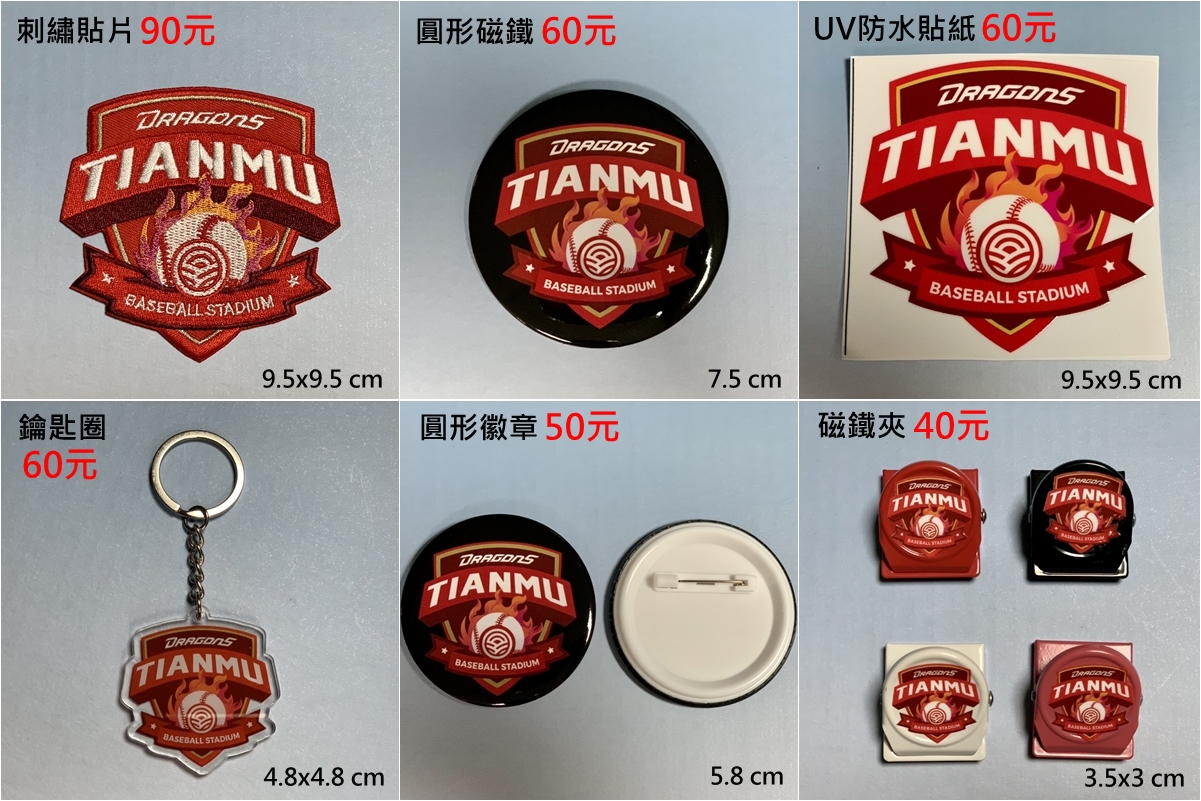 包括天母組應援T、刺繡貼片、UV防水貼紙等