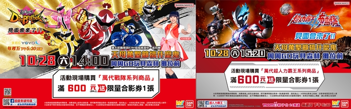 想要一睹暴太郎戰隊,或者是想見超人力霸王布雷薩,還有機會跟守護地球的英雄們合照,就到周周GO玩具森林攤位區。合影券數量有限,發完為止。