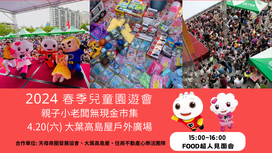 每月舉辦一次的天母市集主題日-媽媽親子小老闆二手市集,四月份特別與天母大葉高島屋百貨公司合作,將於4/20(六)於大葉高島屋前廣場舉辦,現場並邀請FODD超人來到現場與大家見面。