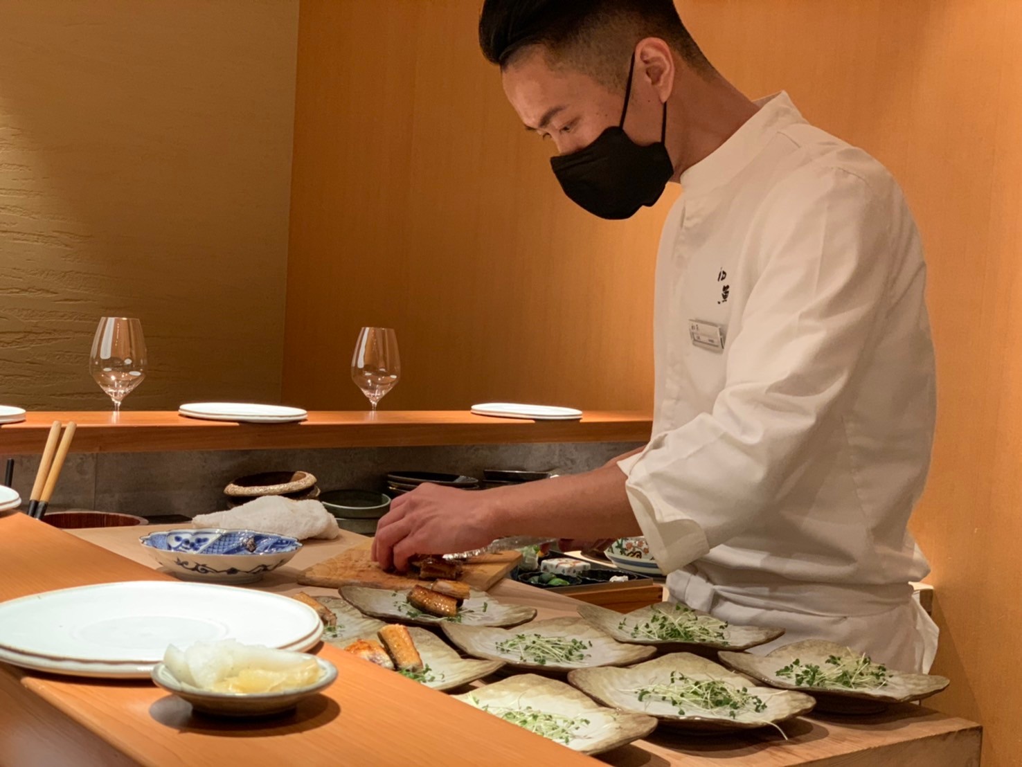 吧台師傅是天母店店長,非常仔細的介紹每一道他出手的料理,雖然吧檯區域不大鄰桌都聽的到,但上菜四組客人就要重複介紹四次,一點都不馬虎,這是他對每一位客人的尊重。