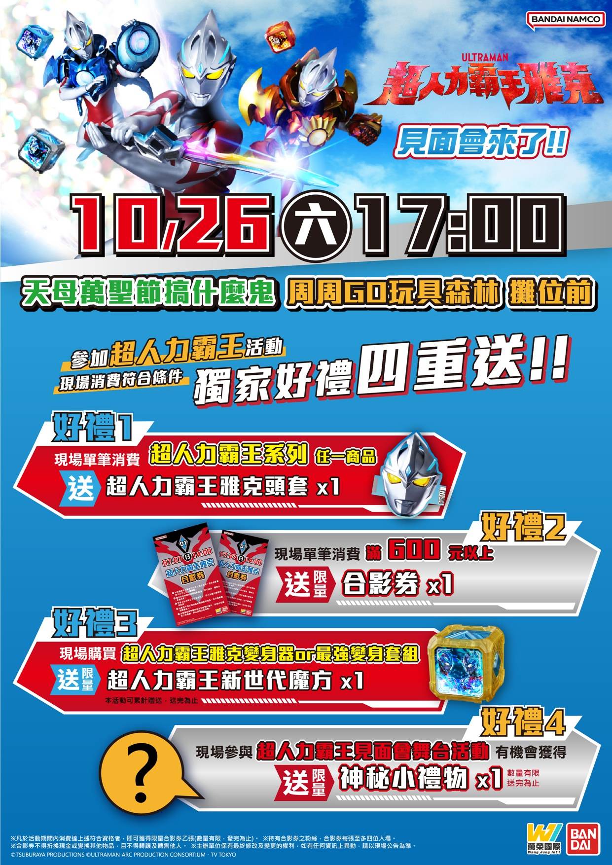 想要一睹超人力霸王雅克,或者是想見假面騎士GOTCHARD & GAVV,還有機會跟守護地球的英雄們合照,就到周周GO玩具森林攤位區。合影券數量有限,發完為止。
