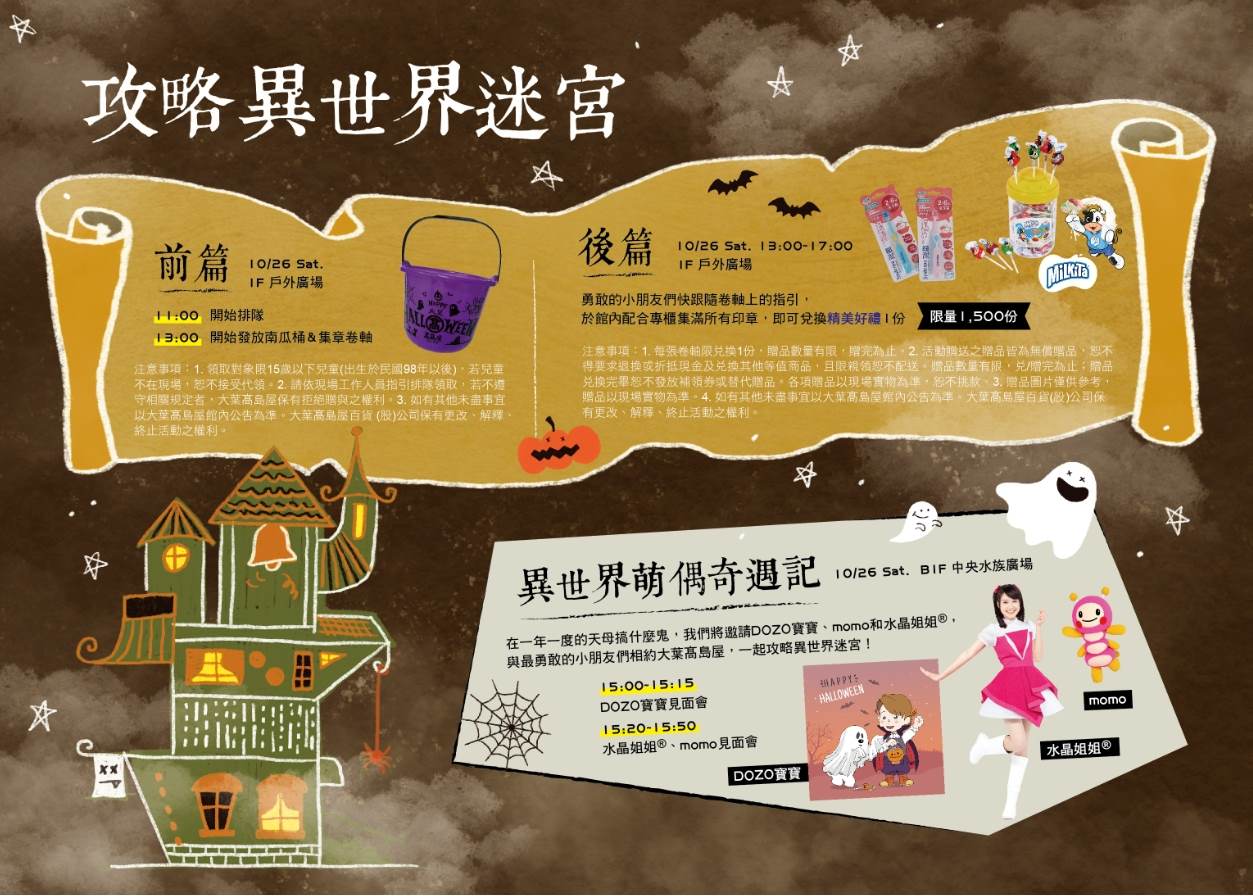 今年的萬聖節,歡迎大小朋友組成探險小隊,攻略這座異世界迷宮!
