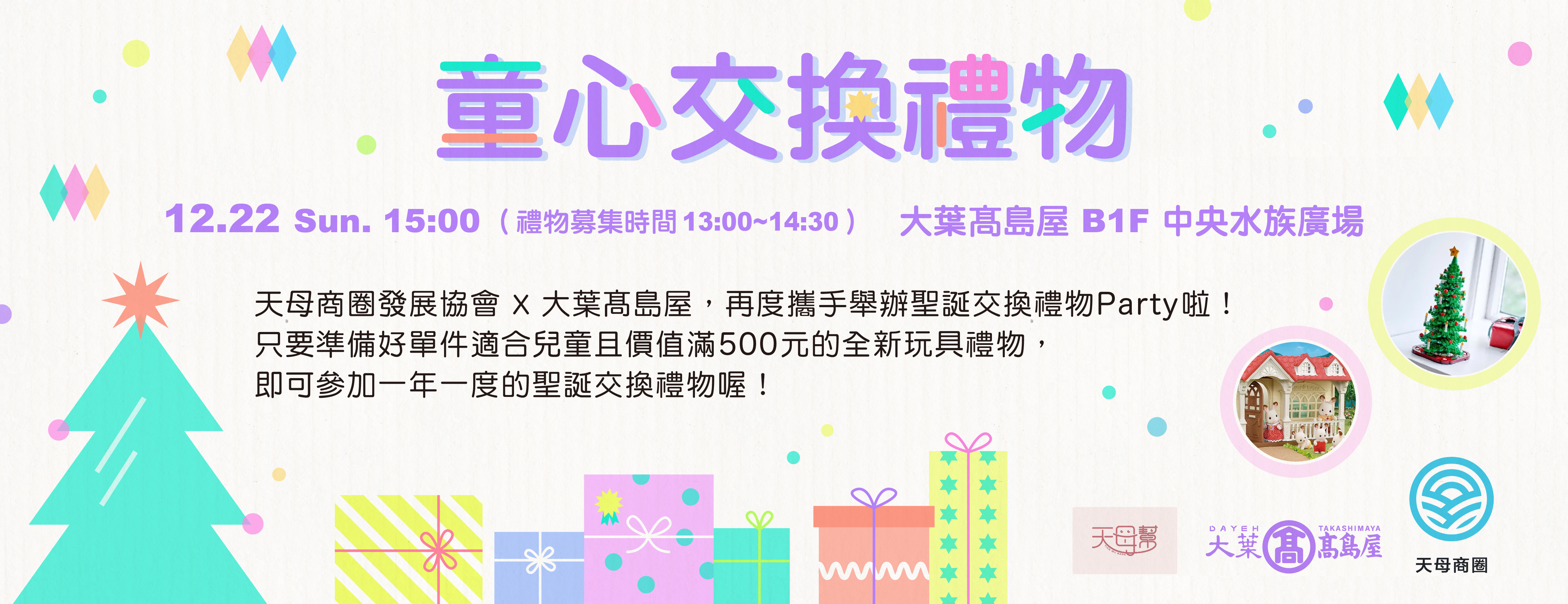 天母商圈發展協會 x 大葉高島屋百貨公司 x 天母幫社團再度攜手舉辦超大型聖誕交換禮物PARTY啦!
