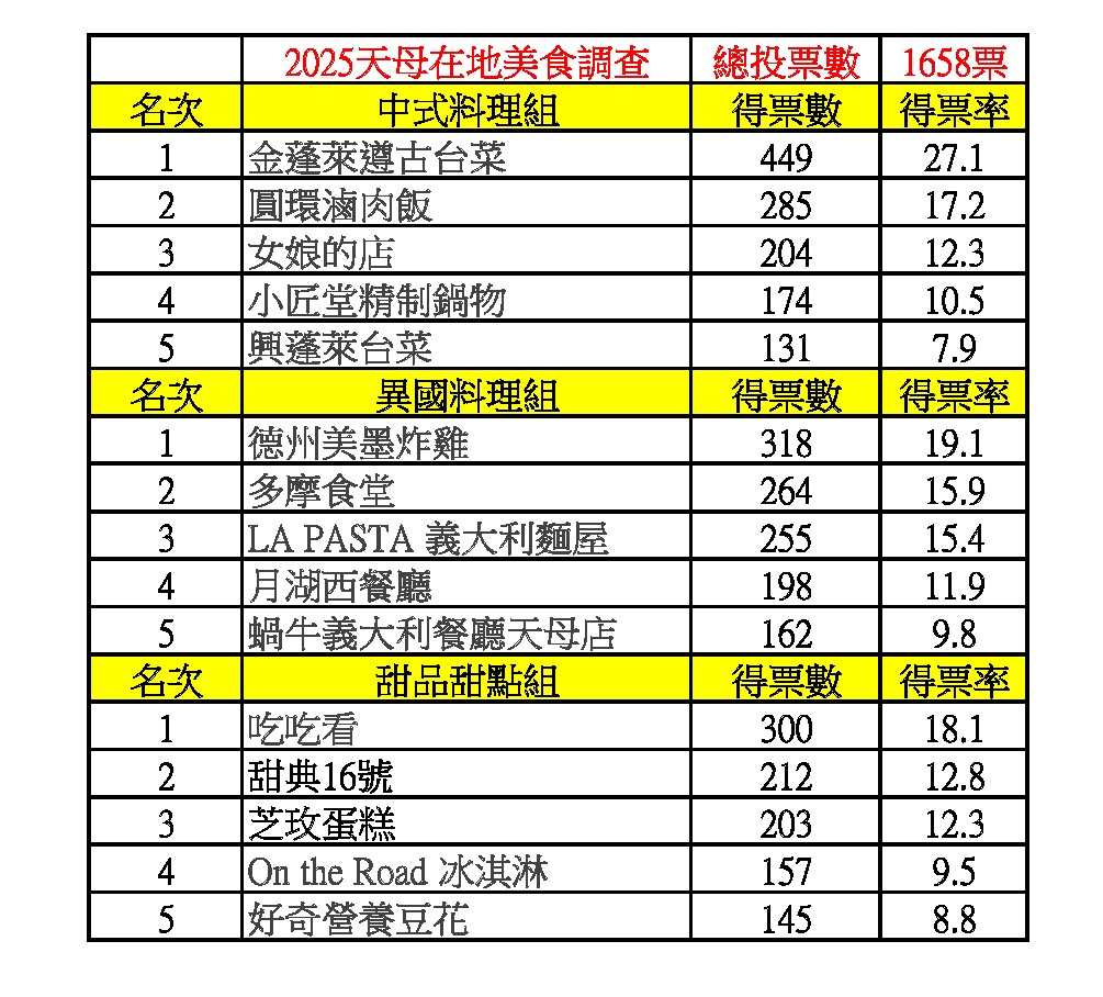 2025天母在地美食調查票選結果出爐