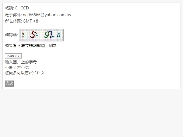 - 請檢查是否有空白字元,並注意驗證碼大小寫分別。