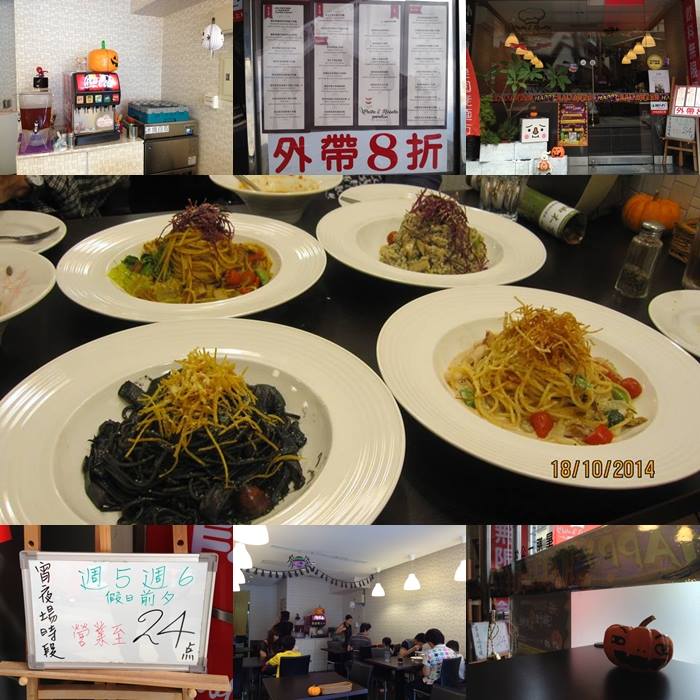 雖然不是什麼很高級的裝潢,但該有的都有,可以看得出來老闆的用心,萬聖節的腳步越來越近,老闆也配合商圈活動做點佈置,光是這一點就很難得,店裡販售的除了義大利面以外,還有燉飯、炒飯等等,價格約150-250左右,而且飲料無限暢飲,編仔在店裡看了一下,幾乎每桌都會有小朋友,可見這家店還蠻讓小朋友喜歡的,只要周五、周六還開宵夜場營業到晚上12點,剩下的就看圖說故事囉。