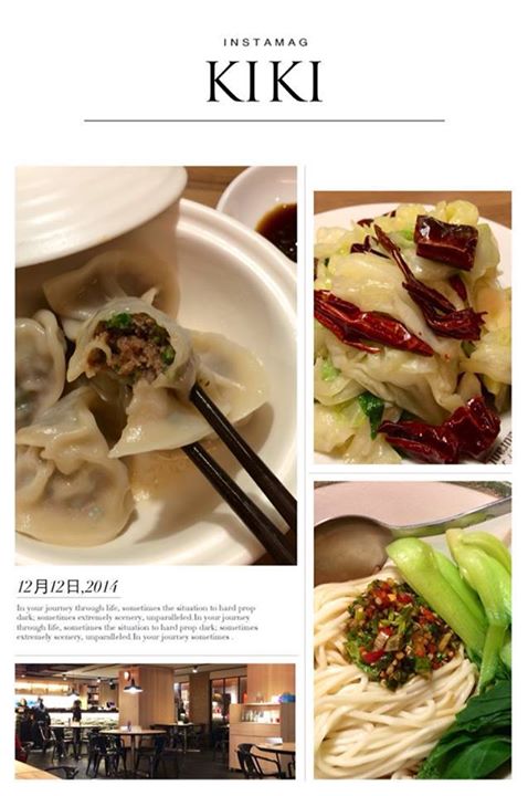 KIKI的菜單上會有辣椒圖示,小紅辣椒愈多的表示愈辣。超嗜辣的特派員完全忽略沒有辣椒標示的菜,只在很多辣椒的菜色裡挑選。最後選了川味嗆麵、宮保高麗菜和蒼蠅頭水餃,從頭辣到尾,好過癮。