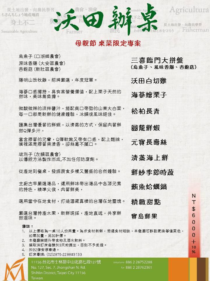 沃田旅店母親節桌菜限定專案