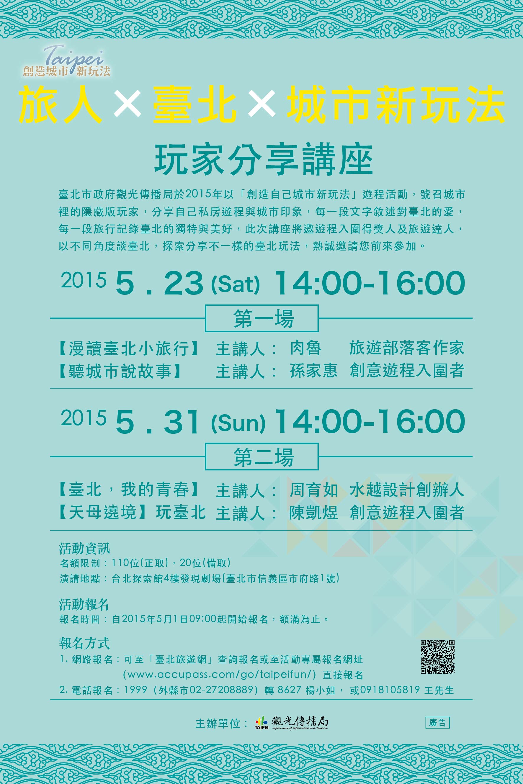 觀光傳播局「旅人×臺北×城市新玩法」免費講座 523 531邀您一同與城市玩家對話 探索臺北城市新玩法