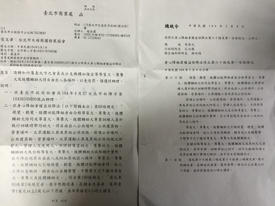 導盲犬、導聾犬及相關輔助犬可自由進出店家,請各位商圈老闆們注意唷!!!