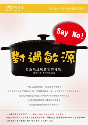 大古鐵器TAKU IRONWARE講述鑄鐵鍋應用及健康飲食的概念, 並搭配家常食材現場料理&分享做法,5/13下午料理食堂-無奶料理,歡迎免費入場參加。