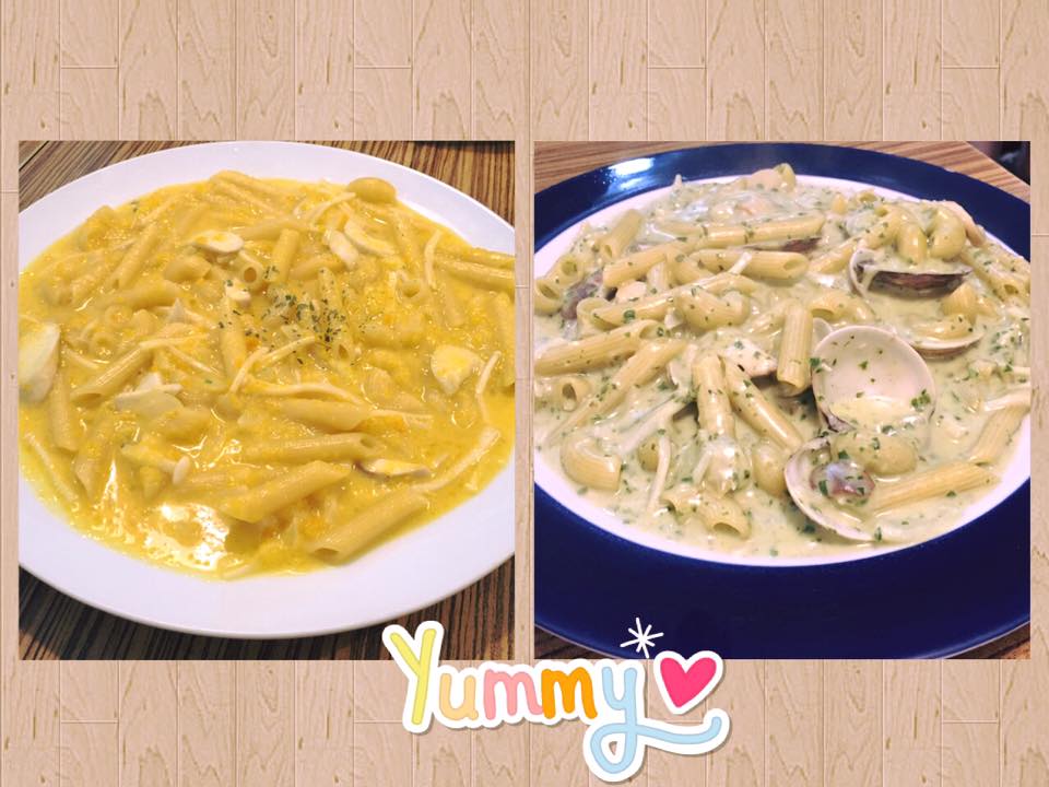 甜妻頓時傻眼.. 是有沒有這麼固執啦XDD 其他口味明明就也很不錯,南瓜醬口感香甜,而且換成筆管麵用叉子很方便,我們家的小朋友好喜歡呢!而且無論是內用或外帶都會附上餐包和冰紅茶,內用的話紅茶還可以免費續杯唷~