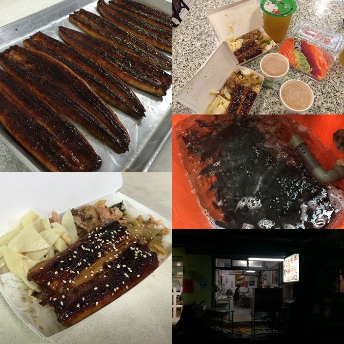 圖中是鰻魚便當,除了烤鰻魚一片外還有一些日式的小菜,整份也才賣170元,如果是單買鰻魚,一尾大約300多,看大小重量而定,買完後又嘴饞跑去和平島買了生魚片,再繞到天母東路的巧門烙了兩杯無糖青茶,最後就跑去找天母幫版主開吃,以上行程在這邊推薦給大家,祝大家旅途愉快。