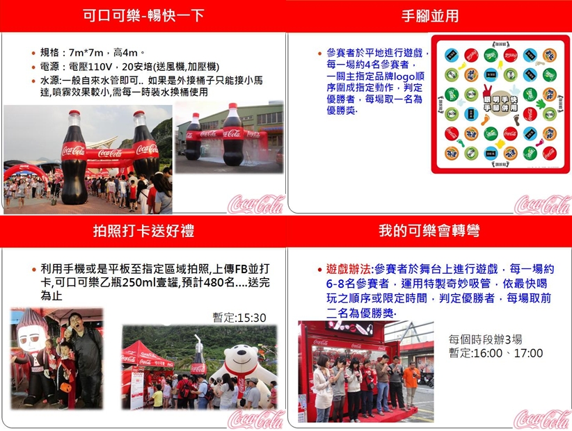 現場提供多樣互動式活動,如暢飲活動、芬達FUN出樂趣味、推瓶子、歡樂一把抓等多項可口可樂挑戰賽活動與民眾一起參與。