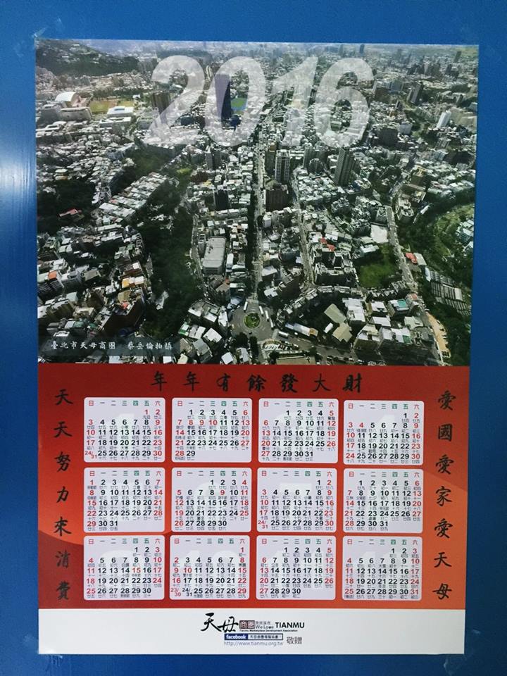 2016年天母商圈年曆免費發送