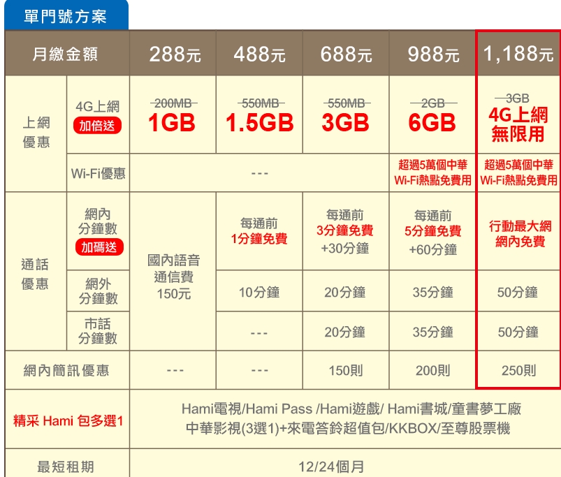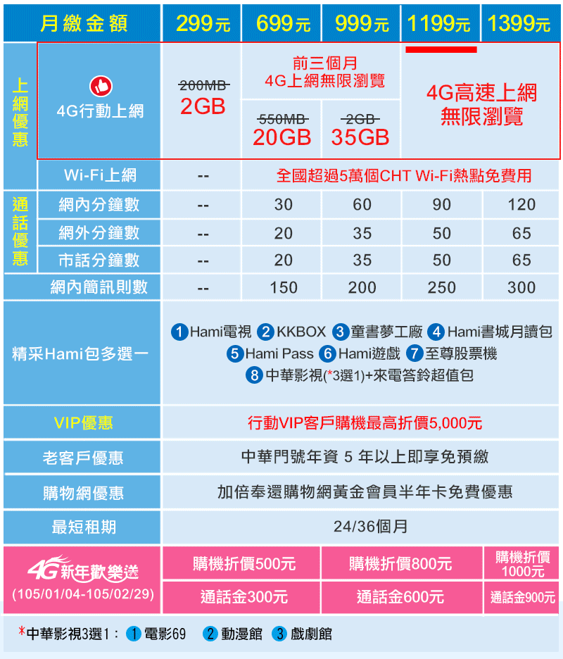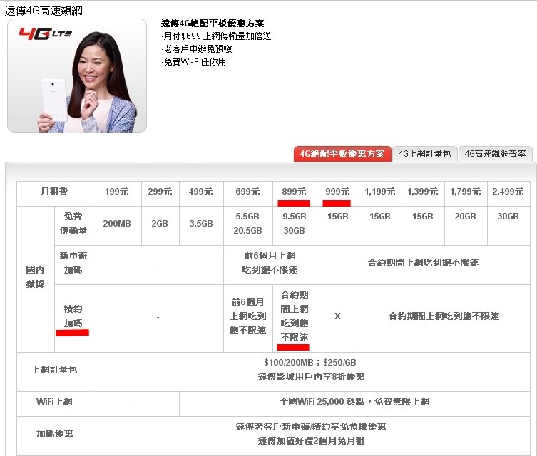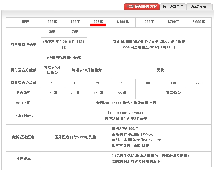 遠傳電信資費查詢:http://www.fetnet.net/cs/Satellite/rate/postpaid/4GLTEPromotion