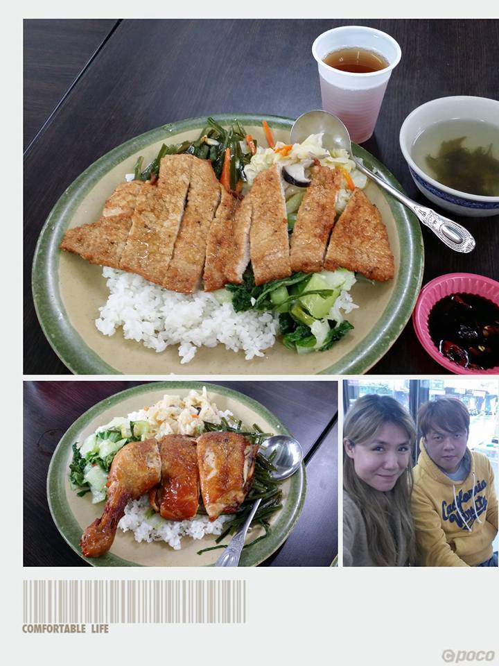 編仔是比較推薦雙拼,雞腿、排骨一次就可以吃到,記得要裝點店家特製的辣椒醬油,吃起來會更有風味喔。