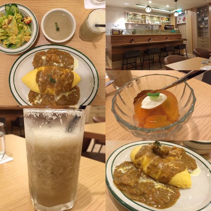 走進店內點了咖裡歐姆蛋,加了套餐則是多了沙拉、濃湯、飲料,比較特別的是飲料果汁都是現打的,圖中的香蕉果汁還吃到的香蕉泥,主菜咖裡歐姆蛋套餐跟在日本吃起來水準差不多,尤其外層的歐姆蛋又厚又滑又飽滿,可能因為吃得太認真的關係,店家最後還招待手工限定果凍讓編仔有店意外。