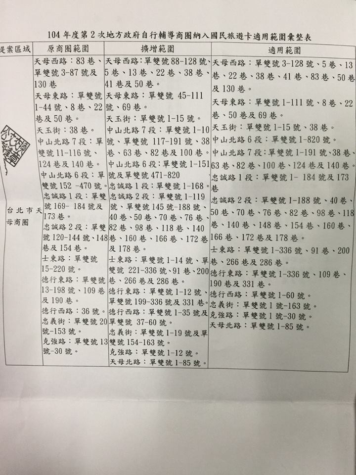 天母商圈國民旅遊卡店家範圍擴大申請案已經通過了