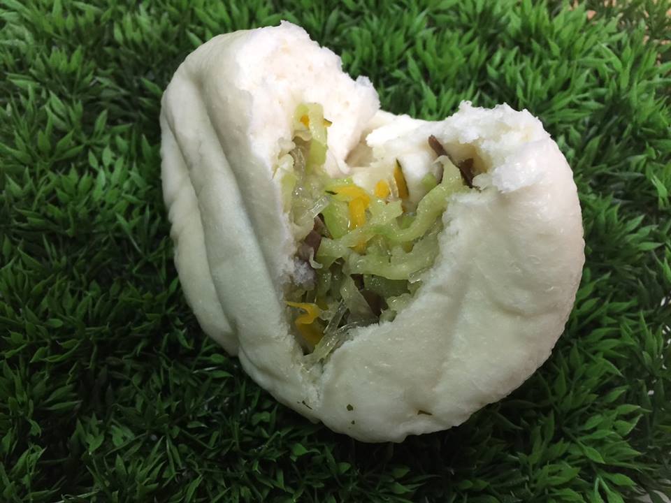 老闆拿到佛手瓜後就開始開發商品,鑽研如何讓佛手瓜和包子做結合,經過了日以繼夜的嘗試佛手瓜包就這樣誕生了,吃起來很清爽不油膩,夏天沒什麼食慾的人非常的適合,素食的朋友也可以吃。